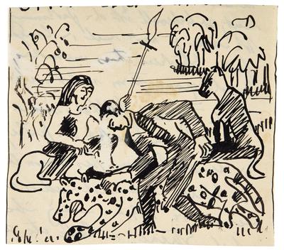 ERNST LUDWIG KIRCHNER 1880 - 1938 LEOPARDENDRESSUR (DRESSAGE OF THE LEOPARDS) inscribed extensively on the versopen and ink on paperUnframed:15.5 by 17cm., 6⅛ by 6¾in.Executedcirca1920.This work is sold unframedThis work is listed in the Ernst Ludwig Kirchner archives, Wichtrach/Bern.To view shipping calculator, pleaseclick