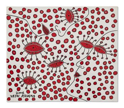 YAYOI KUSAMA b.1929DOTS BY GIRLS (ZAT) acrylic on canvassigned in English and dated 2004; signed andtitled in English and dated 2004 on the reverseExecuted in 2004, this work is accompanied by a registration card issued by YAYOI KUSAMA Inc.44.5 by 52 cm. 17½ by 20½ in.----------------------------------------------草間彌生1929年生女孩點波點(ZAT)壓克力畫布2004年作款識Yayoi Kusama,2004Yayoi Kusama,2004 ,《DOT BY GIRLS》(作品背面)44.5 x 52 公分,17½x 20½英寸