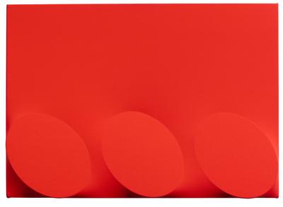 TURI SIMETIb. 1929TRE OVALI ROSSIsigned and dated 09 on the reverse, acrylic on shaped canvas. This work is registered in the Archivio Turi Simeti, edited by Dep Art Gallery, Milan, under the n. 2009-R0502 and it is accompanied by a certificate of authenticity issued by the Archivio Turi Simeti, Milan (firmato e datato 09 sul retro, acrilico su tela sagomata. L'opera è registrata presso l'Archivio Turi Simeti, a cura di Dep Art Gallery, Milano, con il n. 2009-R0502 ed è accompagnata da certificato di autenticità rilasciato dall'Archivio Turi Simeti, Milano) inches 19.5 by 27.4, cm 49.5x69.5Framed: inches 25.6 by 33.5 by 3.5, cm 65x85x9Please see shipping calculator link:click here.(«Calcolatore di spese di spedizione»:cliccare qui).