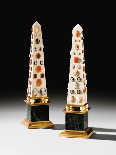 Lucien Toulouse, French, circa 1935 and 19th century, | PAIR OF OBELISKS WITH CAMEOS