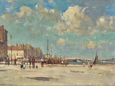 Property from the Estate of Andrew HartnagleCHARLES COURTNEY CURRAN 1861 - 1942 IN THE BARNYARDsigned CHAS. C. CURRAN.and dated1891.(lower right); also signed againCharles C. Curranand inscribed indistinctly (on artist's label affixed to the reverse) oil on canvas9 by 12 ¼ inches (22.9 by 31.1 cm)