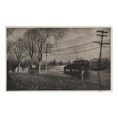 MARTIN LEWIS 1881 - 1962 WET NIGHT, ROUTE 6 (M. 104) Drypoint, 1933, signed in pencil, from the edition of approximately 51, on wove paper, framedplate: 225 by 371 mm 8⅞ by 14⅝ in sheet: 317 by 460 mm 12½ by 18⅛ in
