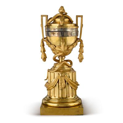 Property from the Collection of Bernard Josephine ChausA LOUIS XVI GILT BRONZE PENDULE A CERCLES TOURNANTS, CIRCA 1780signedCronier A PARISabove minute ring; the bell-striking movement with outside count wheel and silk suspension to the anchor escapementheight 26 in.; width of base 10 in.66 cm; 25.5 cm