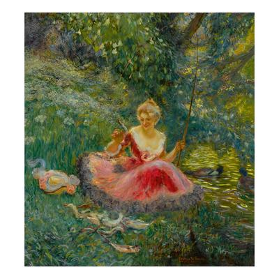 GASTON LA TOUCHEFrench 1854 - 1913 LA PÊCHEsignedGaston la Touche, inscribedStC and dated02 (lower right) oil on canvas43¾ by 39⅞ in.111.1 by 101.3 cmThis work will be included in the Gaston La Touche catalogue raisonné being prepared by Selina Baring Maclennan andRoy Brindley.