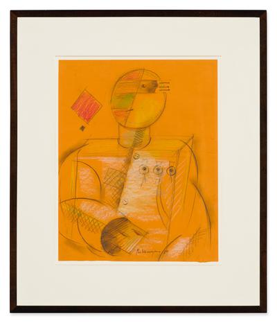 VLADIMIR NEMUKHIN1925-2016 UNTITLEDsigned in Cyrillic anddated 89 l.m.; further bearing a Leonard Hutton Galleries label on the backing boardpasteland pencil on orangepaperSheet: 17¼ by 13¾in., 44 by 35cmFramed: 26 by 22¼in., 66 by 56.5cm