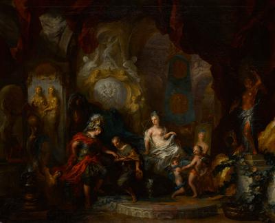 Property from the SØR Rusche CollectionOTTOMAR ELLIGER THE YOUNGERHamburg 1666 - 1732 AmsterdamAPELLES BEFORE ALEXANDER THE GREAT AND CAMPASPEsigned lower left on the pedestal:O. Elliger fecit.oil on canvasunframed: 64.4 x 78.5 cm.; 25⅜ x 30⅞ in.framed: 73.7 x 87.9 cm.; 29 x 34⅝ in.To view shipping calculator, please click here