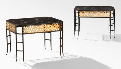 Property from an Important Private Collection TIFFANY STUDIOS “POND LILY” TABLE LAMP circa 1905 with a “Twisted Vine" base leaded glass, patinated bronze shade impressed TIFFANY STUDIOS/NEW YORK base impressed TIFFANY STUDIOS/NEW YORK/443 26¾ in. (67.9 cm) high 20¾ in. (52.7 cm) diameter of shade